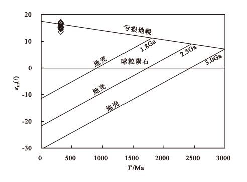 图8 东乌旗闪长岩的锆石Hf同位素特征 Fig.8 Zircon Hf isotopic features of the diorite in DongUjimqin Banner |