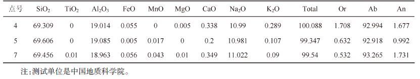 | 表1 东乌旗中细粒二长花岗岩(4437)中斜长石电子探针分析结果(%) Table 1 Results of EPMA analysis of plagioclase in monzonitic granites in Dong Ujimqin Banner(%) |