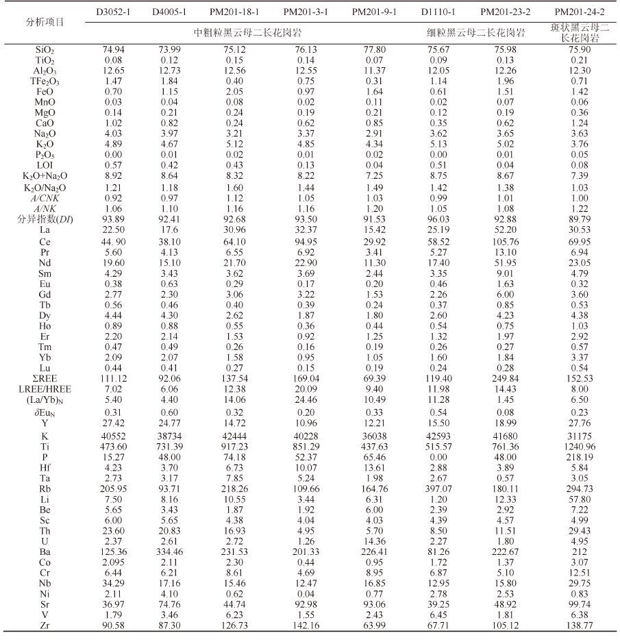 | 表2 烧锅营子花岗岩体主量元素(%)、微量元素及稀土元素(10-6)分析结果 Table 2 Major element(%),rare element and trace element(10-6)composition of Shaoguoyingzi intrusion |