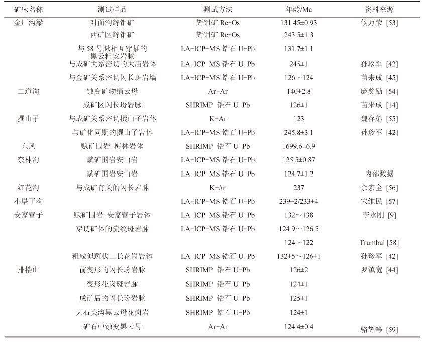 | 表3 朝阳—赤峰地区金矿成矿年龄统计 Table 3 Statistics of metallogenic ages of gold deposits in Chifeng-Chaoyang area |