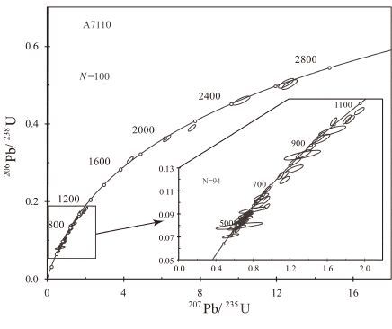 图4 石英岩碎屑锆石U-Pb 年龄谐和图 Fig.4 U-Pb concordia diagrams for detrital zircon of the quartzite |