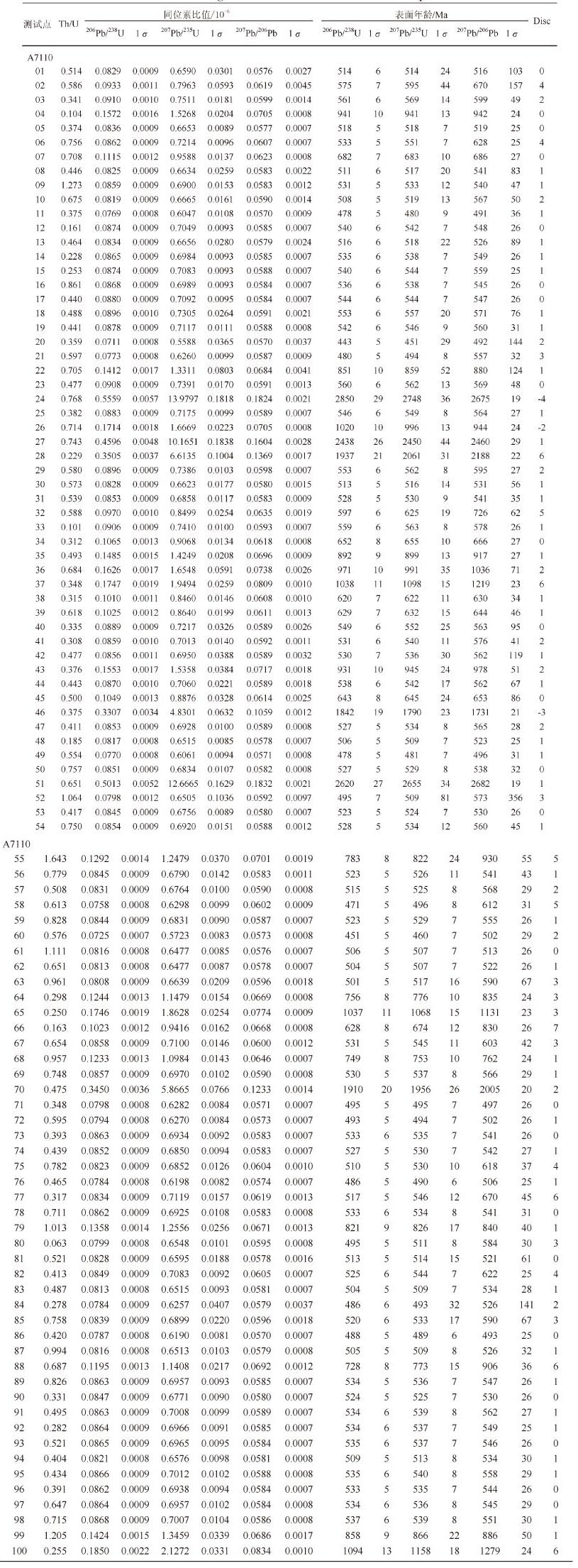 | 表1 石英岩碎屑锆石U?Pb 年龄测试结果 Table 1 U-Pb dating results for the detrital zircons of the quartzite |
