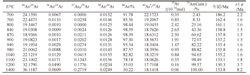 | 表2 长汉卜罗矿床近矿蚀变岩中的绢云母Ar-Ar 定年数据 Table 2 Ar-Ar analytical results for sericite from the altered rocks close to the ore veins |