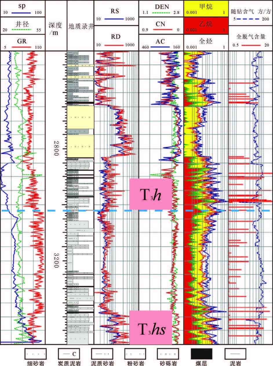 图10 吐哈盆地哈4井三叠系页岩随钻含气评价图❶(❶黄卫东. 吐哈探区源岩油气勘探开发前景评估及有利区块优选[D].中国石油吐哈油田勘探开发研究院. 2010.) Fig.10 Ha4 well Triassic shale gas evaluation of Turpan- Hami Basin❶(❶黄卫东. 吐哈探区源岩油气勘探开发前景评估及有利区块优选[D].中国石油吐哈油田勘探开发研究院. 2010.) |