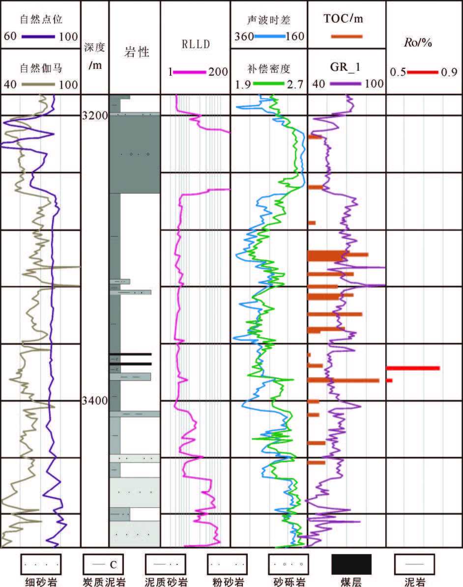 石炭系泥页岩现今镜质体反射率大于2%,烃源岩母质类型以Ⅲ1型为主,兼有Ⅱ型。