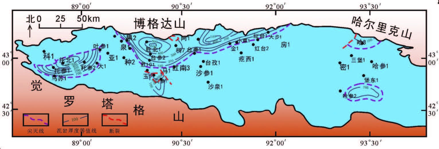 (2)吐哈盆地各套富含有机质泥页岩层位内部或附近都发育有良好的盖层,为控制页岩气藏的聚集与分布提供有利条件。