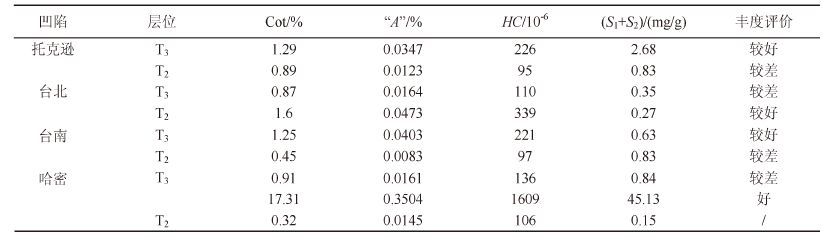 | 表1 哈密坳陷周缘露头二叠系生油岩评价 Table 1 Evaluation of peripheral outcrop of Permian source rocks in the Hami depression |