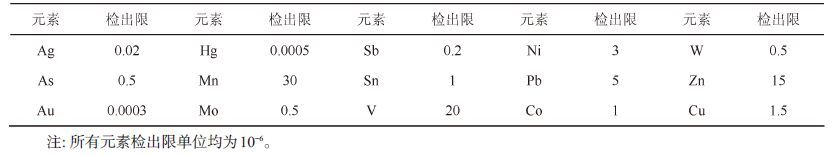 | 表1 水系沉积物样品元素分析检出限要求 Table 1 The element detection limit of the stream sediment samples |