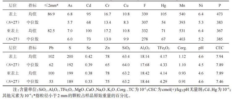 | 表3 表层土壤各粒级组元素浓度平均值与中位数 Table 3 The mean and median values of elemental concentrations in different fractions of top soils |