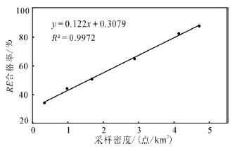 图7 不同采样密度RE合格率变化图 Fig.7 The chart of RE acceptance rate in different sampling densities |