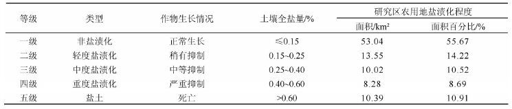 | 表4 土壤盐渍化分级标准及评价 Table 4 The classification standard and evaluation results of soil salinization |
