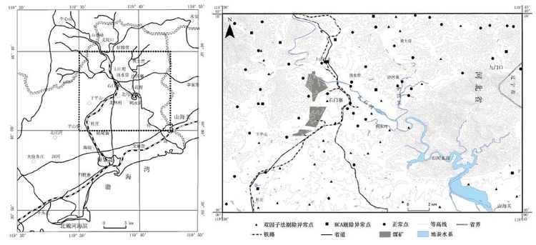 2 研究区概况柳江盆地位于燕山山脉的东部,濒临渤海(图1)。该区地势北高南低,西高东低。柳江盆地以石 门寨镇为中心,位于秦皇岛北28 km,属抚宁县管 辖,地理坐标东经119°30.00′~119°45.00′,北纬40° 00.00′~40°10.00′。